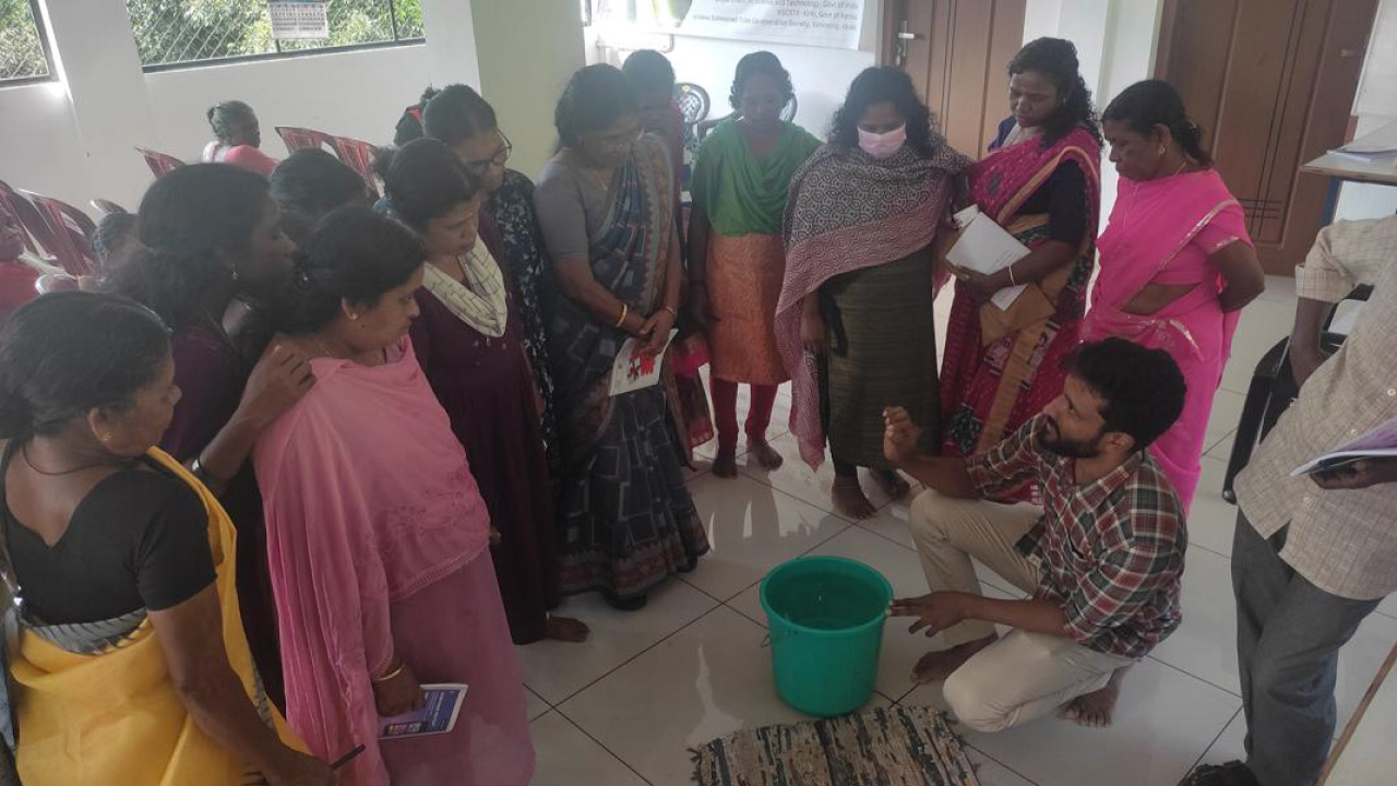 The implementation of the Kannadippaya project followed a carefully sequenced, science-led yet community-driven approach. The first phase focused on understanding the socio-economic profile and skill distribution within the artisan cluster. A structured baseline survey covering 266 individuals across 86 households helped identify income levels, dependence on bamboo weaving, gender participation and existing production bottlenecks. This diagnostic exercise ensured that the intervention design was evidence-based rather than generic. Consultations engaged the Unarvu Cooperative Society for collective ownership. Early workshops built trust among artisans unfamiliar with mechanisation, showing technology’s role in supporting craftsmanship.